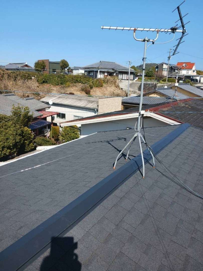 戸建て 屋根工事 瓦工事 屋根工事 コロニアル屋根をオークリッジでカバー工法 藤吉瓦技建福岡県は熊本県荒尾市を拠点に屋根瓦工事の専門業者として活動しています。こちらの施工は、築年数が経ち、劣化が進んだコロニアル屋根を下地処理したうえで、片面接着の防水シート(ゴムアスルーフ)を敷き、その上からシングル材「オークリッジ」でカバー工法を行いました。コストを抑えつつ見た目も一新でき、雨漏り対策と耐久性向上を両立した施工です。藤吉瓦技建は福岡県南部~熊本県北部を中心に周辺地域にまで幅広く対応しております。ぜひお気軽にお問い合わせください。 場所 熊本県玉名市 1 / 1 次の施工事例 戸建て セメント瓦から陶器瓦への葺き替え工事