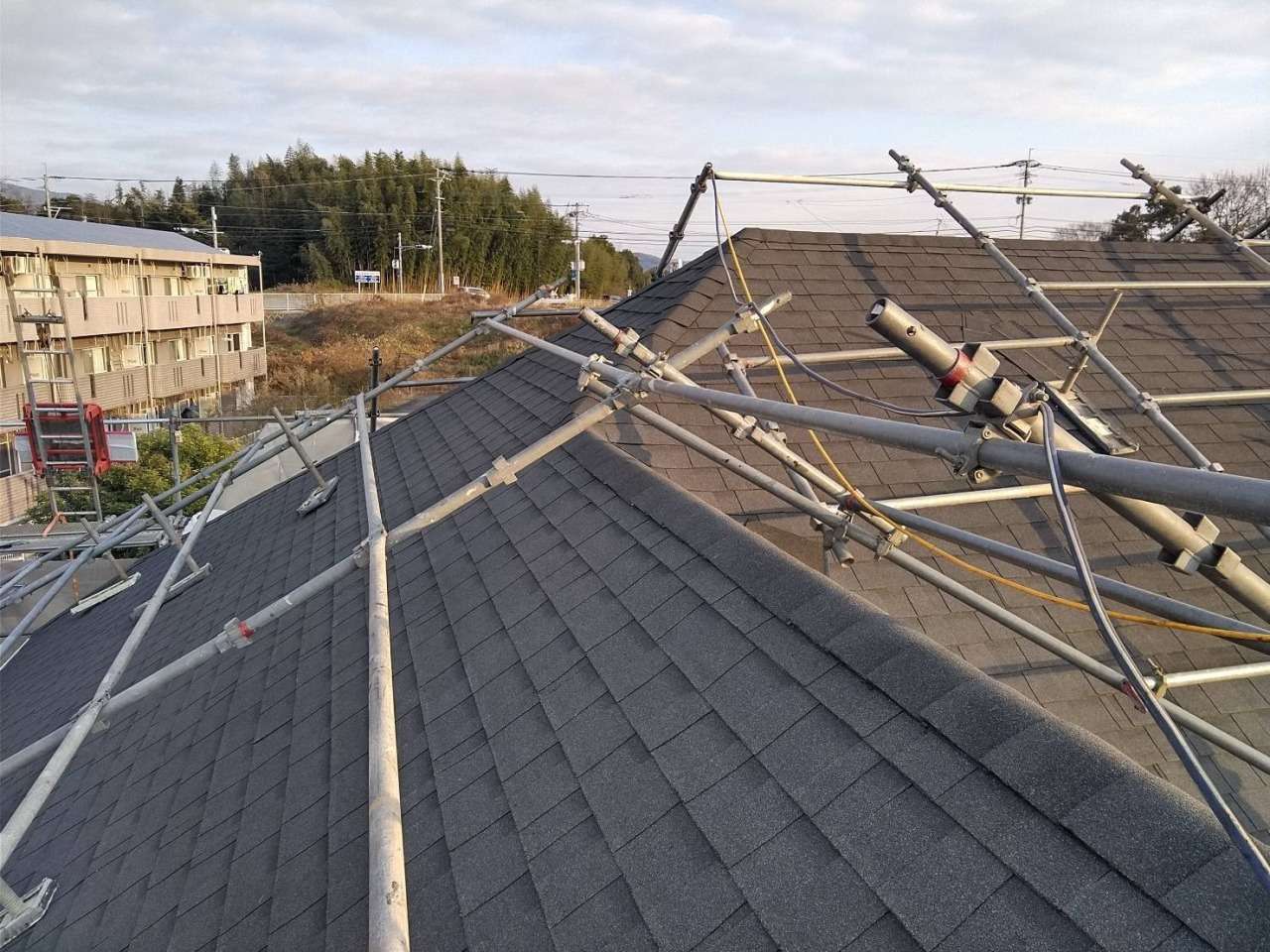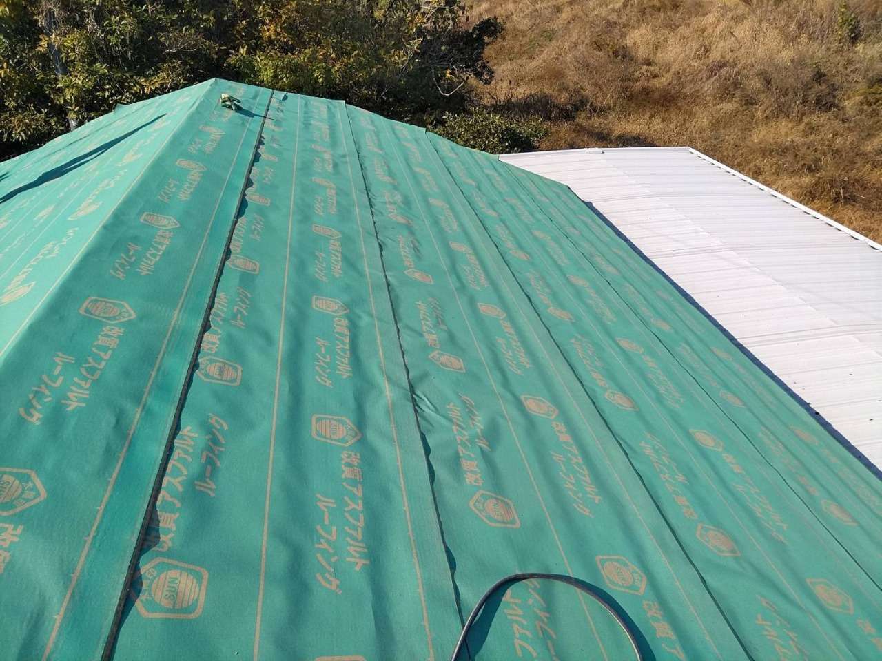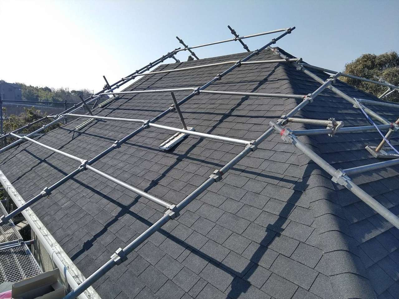今回の施工では既存のコロニアル屋根に、下地補強後ゴムアスルーフを施工し、シングル材「オークリッジ」でカバー。葺き替えよりも工期とコストを抑えつつ、断熱性・防水性も向上。手軽にできる屋根リフォームとして人気の工法です。