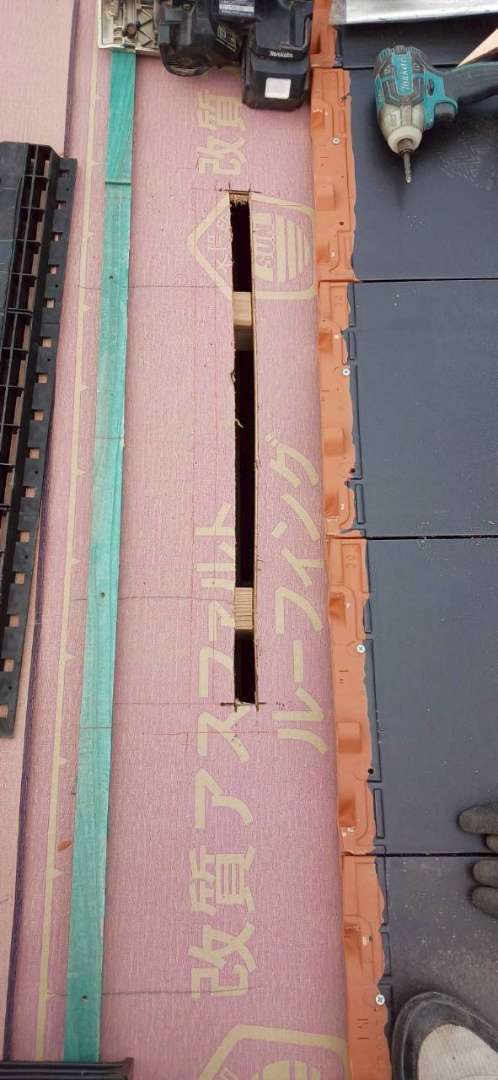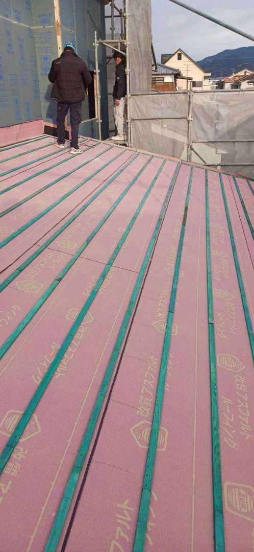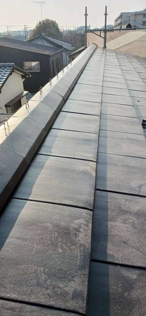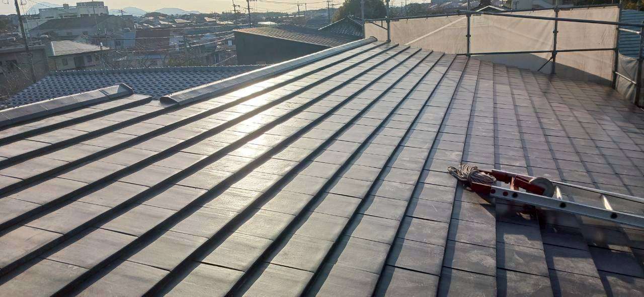 New 戸建て 瓦工事 熊本県荒尾市 瓦工事 新築建売住宅 熊本県荒尾市にて瓦工事を行いました。今回は換気棟の取り付けも実施しています。換気棟とは、屋根の棟部分に設置する換気部材で、天井裏にこもった熱や湿気を外へ逃がす役割を果たします。夏場に屋根裏へたまる熱を排出することで室内温度の上昇を抑え、エアコンの効きが良くなる効果が期待できます。また、湿気を逃がすことで木材の腐食やカビの発生を防ぎ、建物を長持ちさせることにもつながります。見えない部分への施工が、住まいの快適さと耐久性を守ります。 場所 熊本県荒尾市 前の施工事例 戸建て シングル材で安心の屋根リフォーム